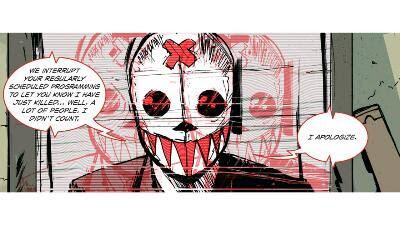 With a physical comic, I could flip back and forth quickly between pages, recontextualizing the story as needed (it's kind of a scattered narrative, non-linear, though artist Riley Rossmo and colorist Jean-Paul Csuka only distinguish between past and present by using black and white with a scattering of red for the past, so there's a little muddling of how tightly connected chronologically the past segments are), the app makes that more difficult to do with ease. But I shouldn't complain, the first issue was free, as are a great many first issues from Image an plenty of other publishers. I think I'll be waiting for physical trade on the rest of this one.